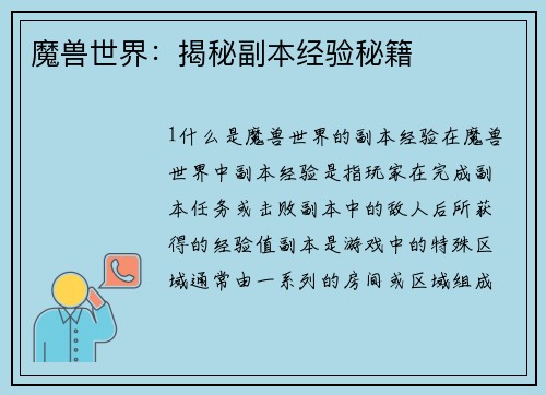 1. 副本怪物血量的基本规律 副本怪物的血量是根据玩家等级和副本难度来确定的。副本怪物的血量会随着玩家等级的提升而增加。难度越高的副本,怪物的血量也会相应增加。这样设计的目的是为了保持游戏的挑战性,让玩家在副本中能够体验到一定的困难和成就感。W88优德 2. 等级和血量的关系 在魔兽世界中,玩家的等级决定了他们能够挑战的副本难度。随着玩家等...